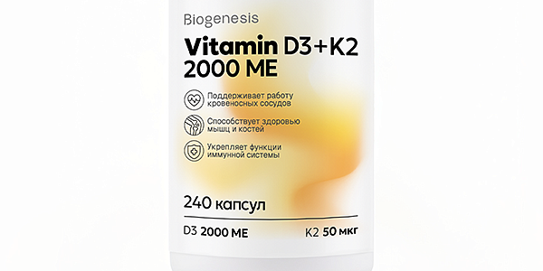 Biogenesis Витамин D3+K2 2000МЕ/50 мкг, капсулы 240 шт в наличии. Узнайте, как купить товар с бесплатной доставкой в Тюмень, Тобольск, Ишим, Заводоуковск, Ялуторовск и другие населенные пункты Тюменской области на странице «